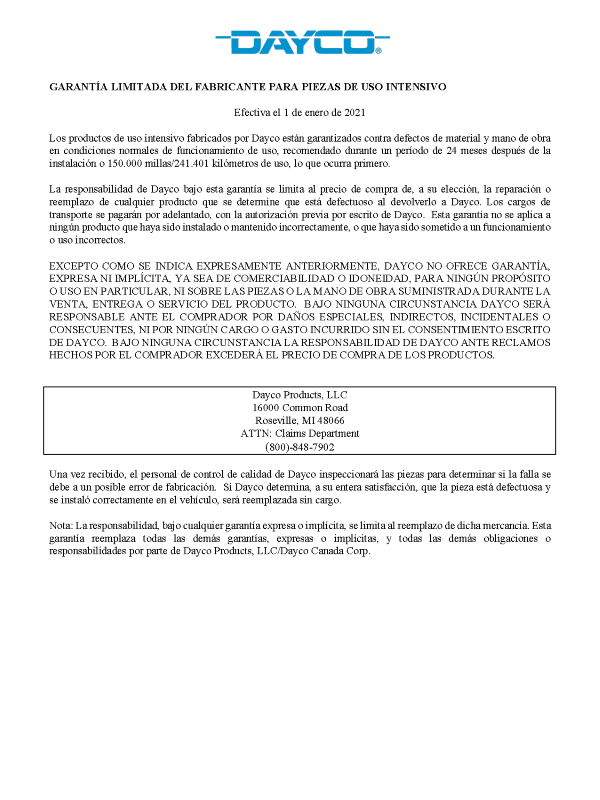 Durabilidad superior: Correas, tensores y poleas diseñados con materiales de última generación para mayor resistencia y vida útil.